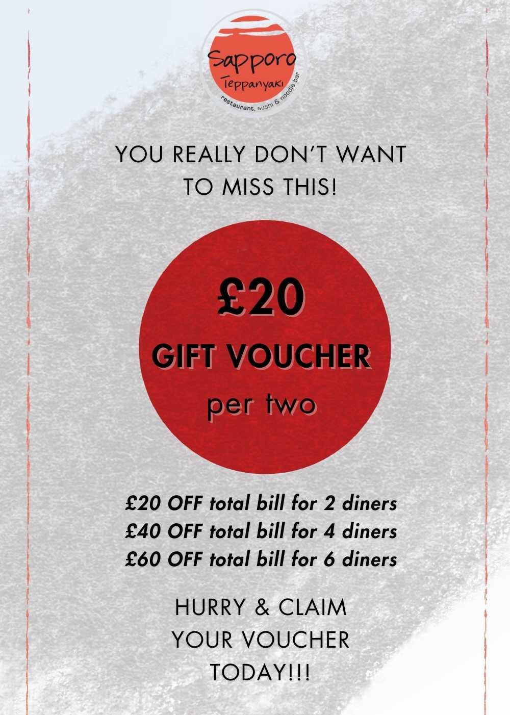 • £20 OFF total bill for 2 diners